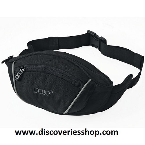 Μπανάνα μέσης από ύφασμα Cordura. Μία κεντρική θήκη με εσωτερική τσέπη και κλείσιμο με φερμουάρ. Μικρότερη θήκη μπροστά και κλείσιμο με φερμουάρ. Κρυφή θήκη πίσω και κλείσιμο με φερμουάρ. Πλαϊνές ενισχύσεις στον ρυθμιζόμενο κατά μήκος ιμάντας μέση για καλύτερη στερέωση στη μέση. Κωδικός: 9-08-103. Χρώμα: Μαύρο