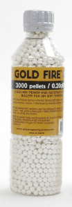 Τα Gold Fire είναι πλαστικές μπίλιες για Airsoft, υψηλής ποιότητας που προσφέρουν μεγάλη συγκέντρωση στις βολές και είναι κατάλληλα για πιστόλια ελατηρίου και κοινά ηλεκτροκίνητα όπλα. Το βάρος των 0.25 g είναι πολύ δημοφιλές στους περισσότερους παίκτες με συμβατικά ηλεκτροκίνητα όπλα καθώς επίσης και σε αυτούς που διαθέτουν όπλα και πιστόλια αερίου. Δίνουν πολύ καλή απόσταση και ακρίβεια.