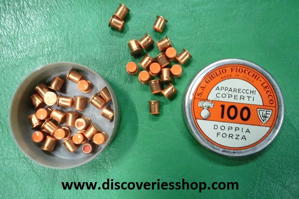 Κουτί καψυλιων φυσιγγίων Fiocchi Ιταλίας της Ιταλικής S.A Giulio Fiocchi – Lecco, σε πάρα πολύ καλή κατάσταση. Περιέχονται 43 καψύλια. Διαστάσεις κουτιού: πλάτος 51 cm – ύψος 21 cm