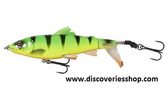 Βασισμένο σε μια τρισδιάστατη σάρωση μωρού πέρκας, με υπέροχες λεπτομέρειες και ρεαλιστικό προφίλ. Η ουρά Turning, συντρίβεται στο νερό, δημιουργώντας έναν δυνατό ήχο, αφήνοντας ένα σούπερ ίχνος αφύπνισης και φυσαλίδας πίσω από το δέλεαρ. Το μικρό μεταλλικό πριτσίνι στην ουρά ενισχύει τον ήχο.