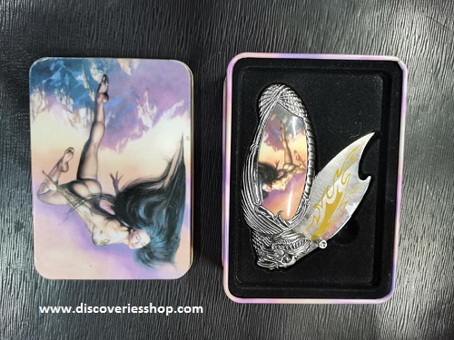Σουγιάς δράκος από ανοξείδωτο ατσάλι με σχέδιο σε μεταλλικό κούτι δώρου.