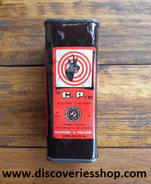 Συλλεκτικο πολυ σπανιο Μεταλλικό κουτί 100 gr. πυρίτιδας GP. POLVERE ITALIANA, της ιταλικής εταιρείας Baschieri & Pellagri.
