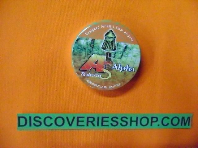 Βλήματα ( βολίδες ) αεροβόλου Alpha μυτερά Τύπος βλήματος: Μυτερό Διαμέτρημα: 4.5mm (χιλ.) Συσκευασία: 250 τεμάχια Πολύ καλής ποιότητας Ελληνικό προϊόν